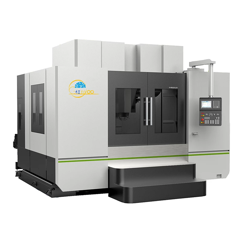 Fully supported box shaped base structure, with X-axis at the bottom and Y-axis at the top; Ensure that the worktable isalways fully supported within the full range of XY axis travel, avoiding the disadvantage of hanging when the worktable ofa conventional vertical machining center moves to the positive and negative limit positions of the X-axis;