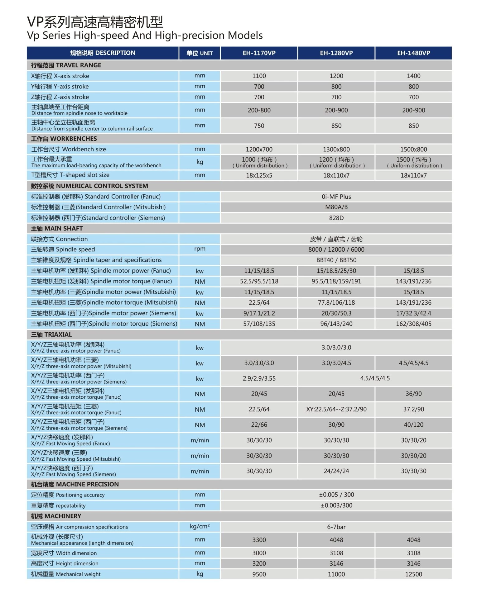 VP SERIES HIGH-SPEED PRECISION MODELS